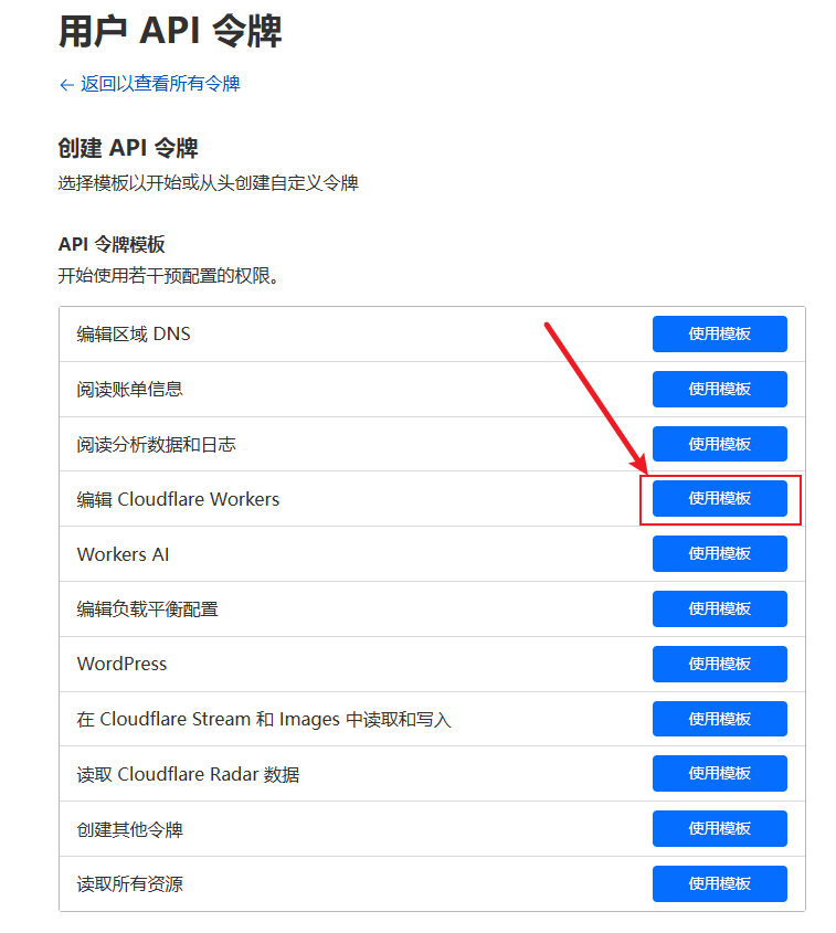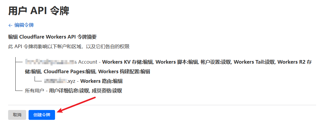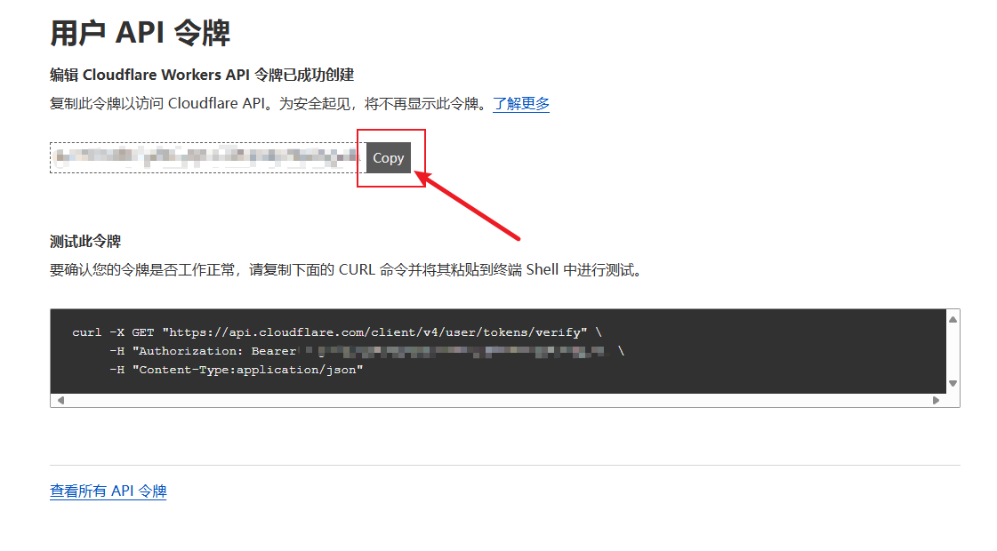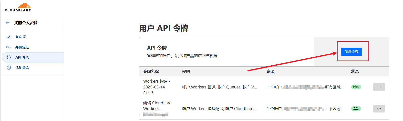 粘贴之后再点击下面右边的 My Profile 创建一个 Worker API ,先点击 创建令牌 :