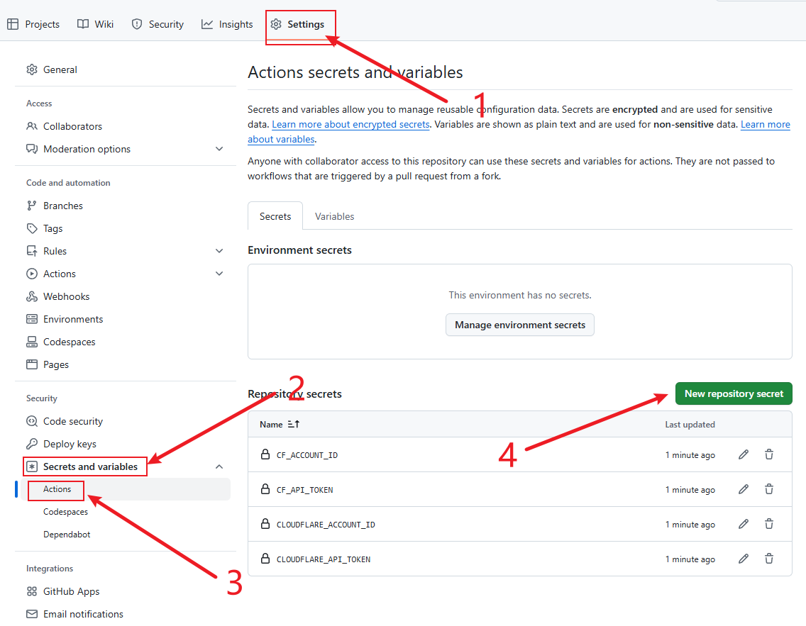 - 拥有一个域名并托管到 Cloudflare
