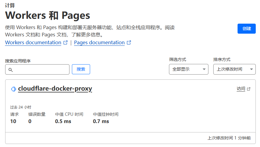 进入到你账号的 Workers 页面,就能看到刚才创建的 Worker 了: