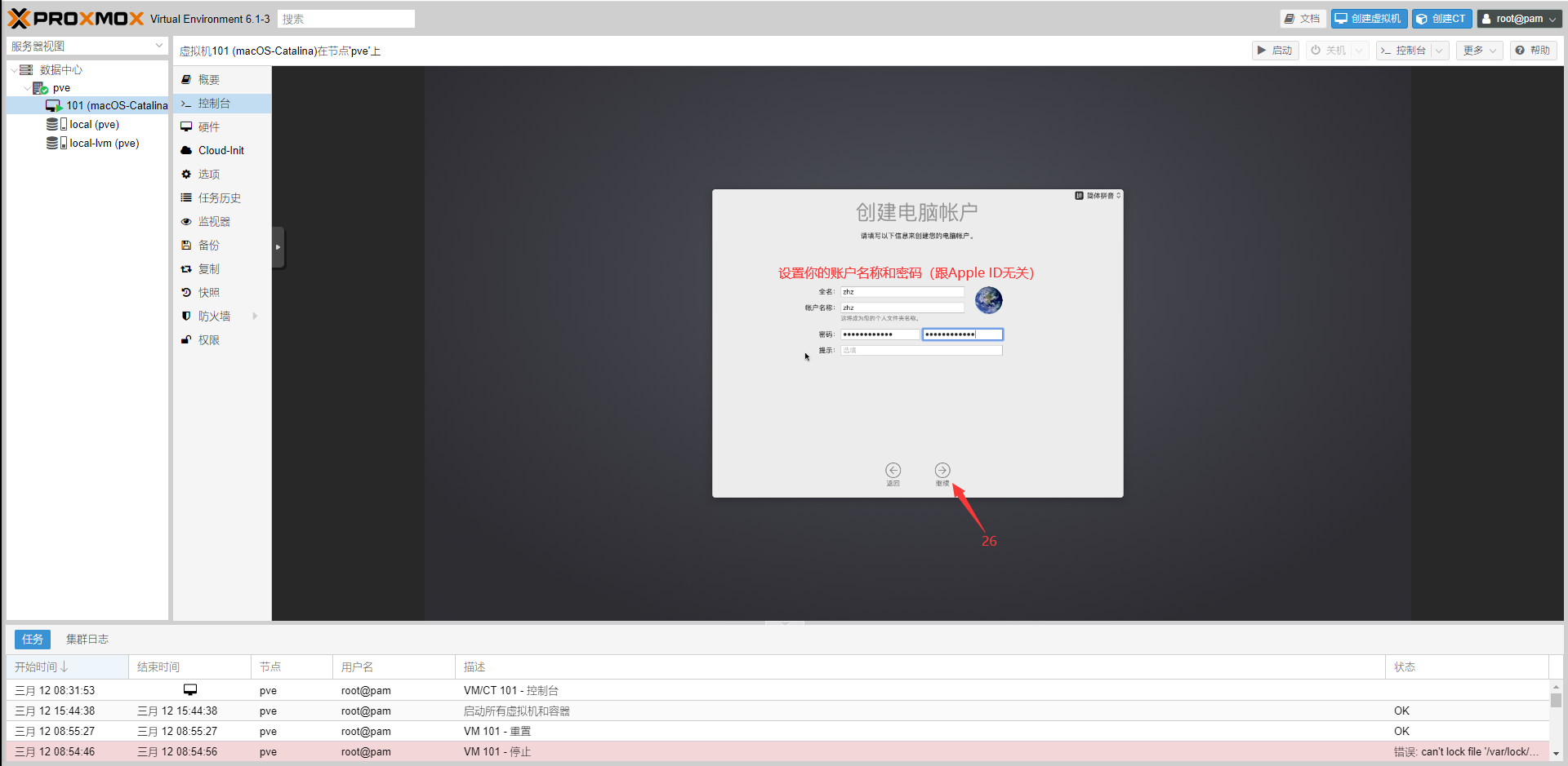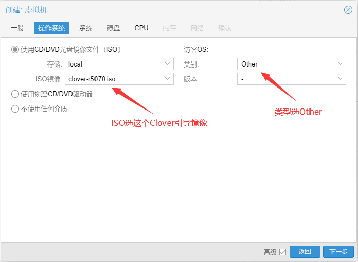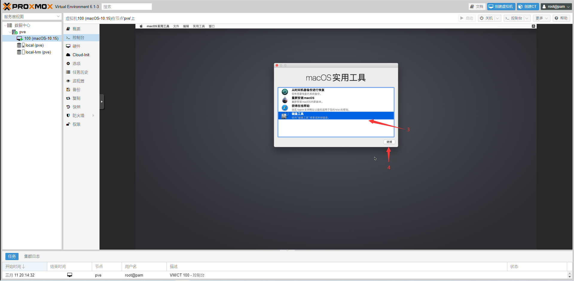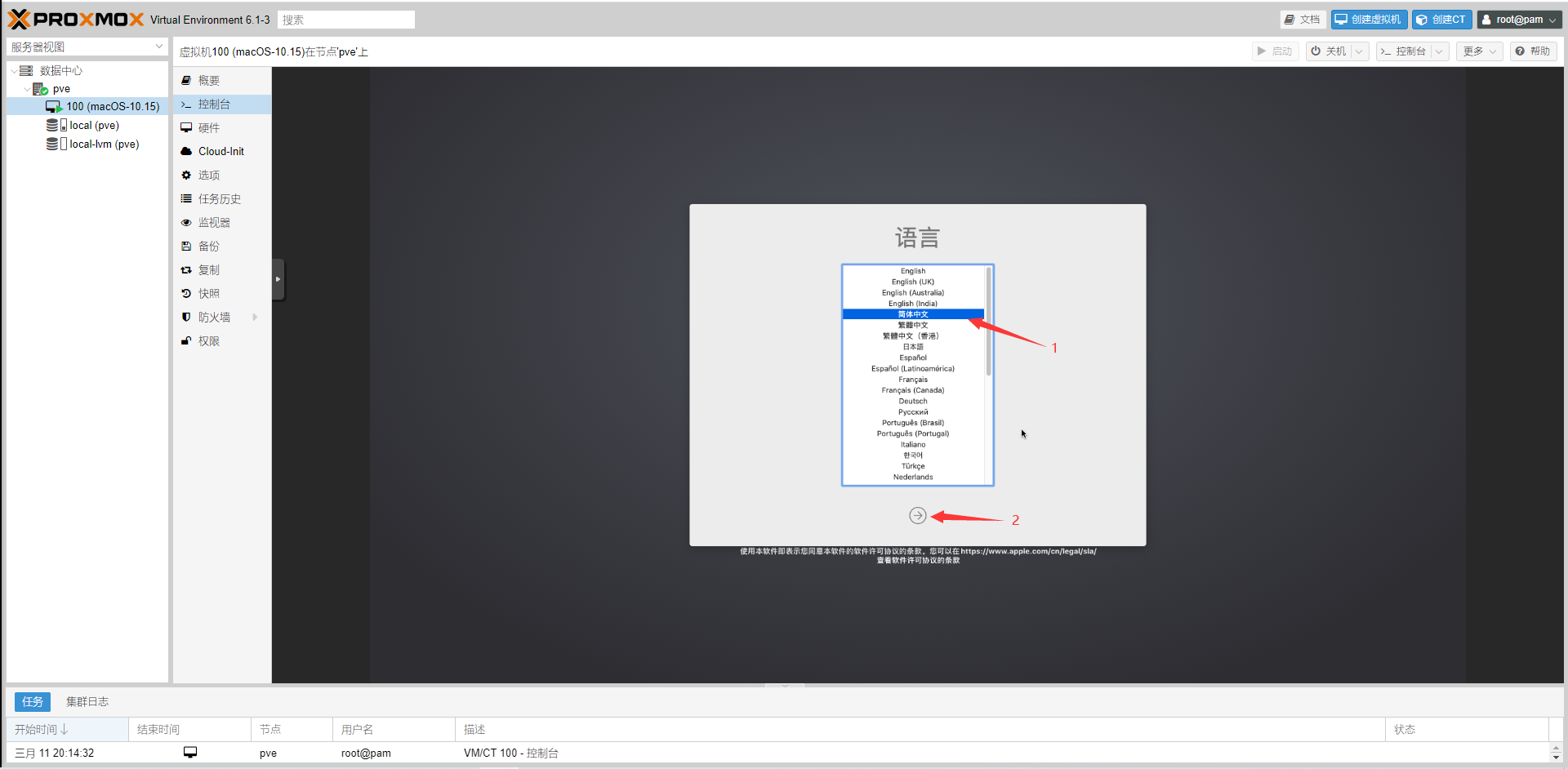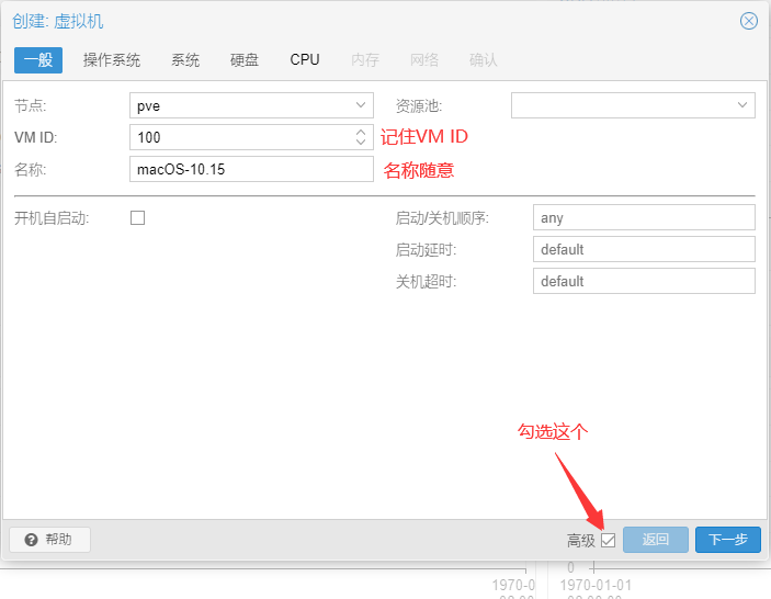回到 Proxmox 控制台,创建一个 macOS 虚拟机。