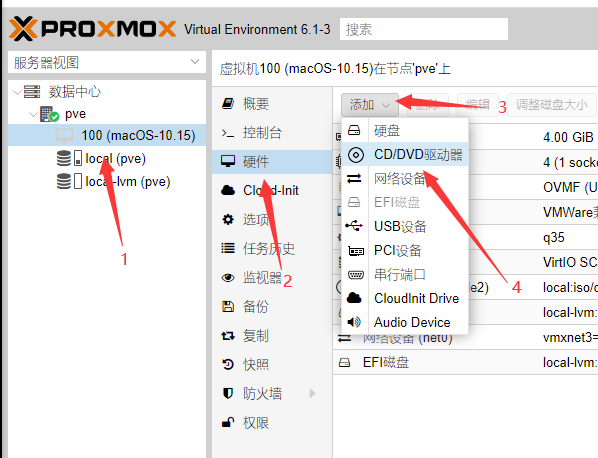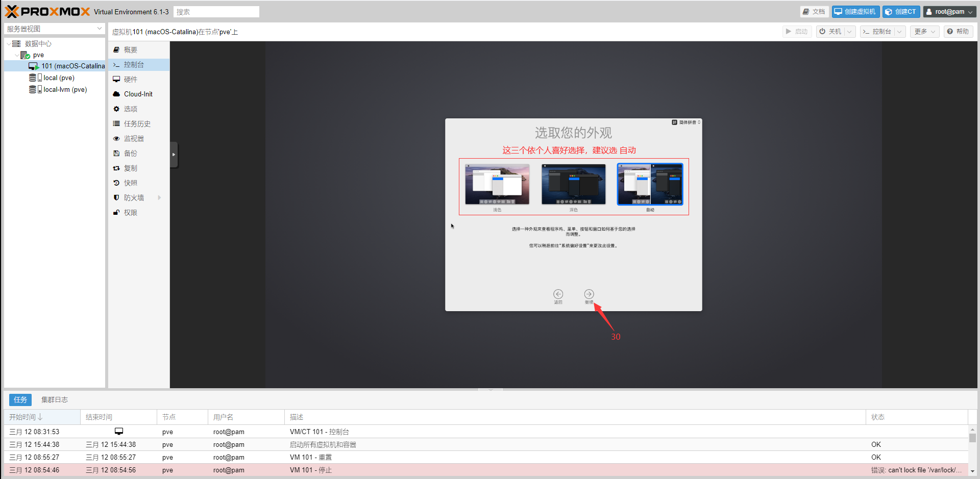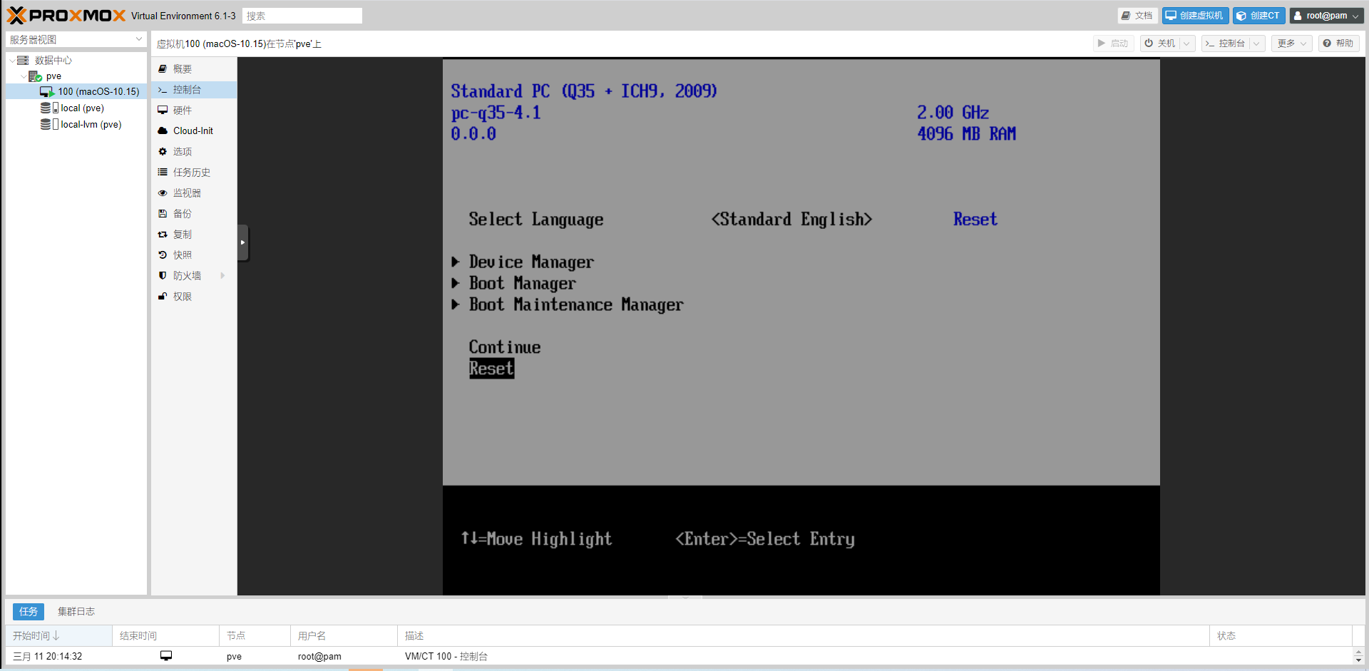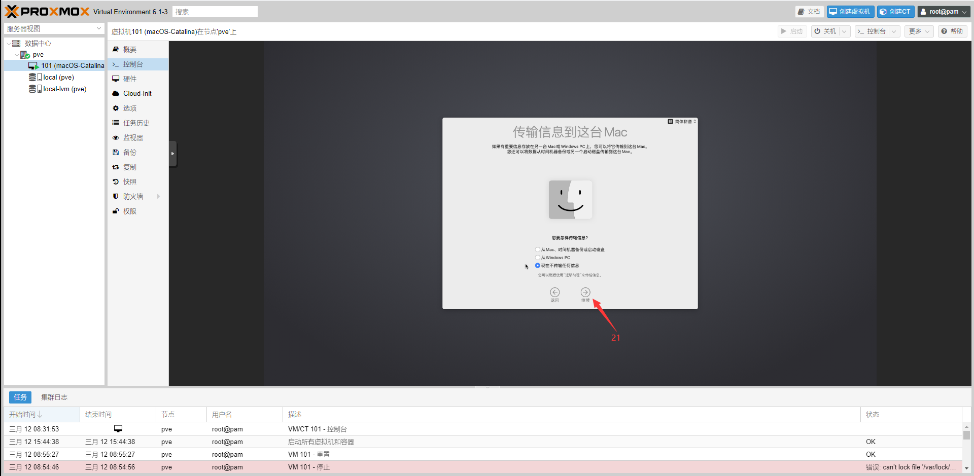 回到 Proxmox 控制台,创建一个 macOS 虚拟机。