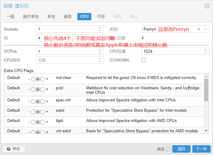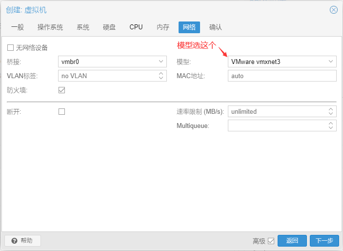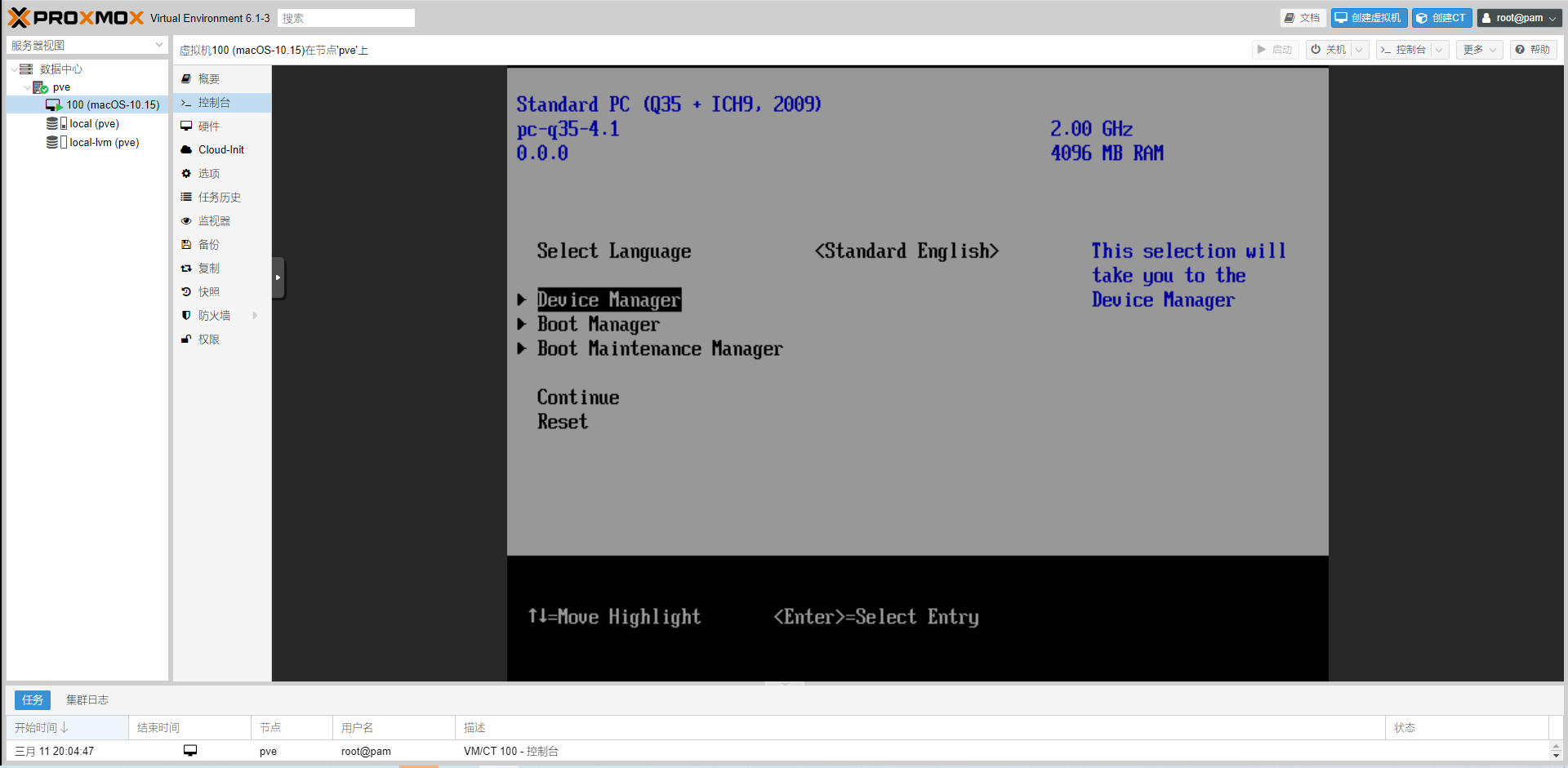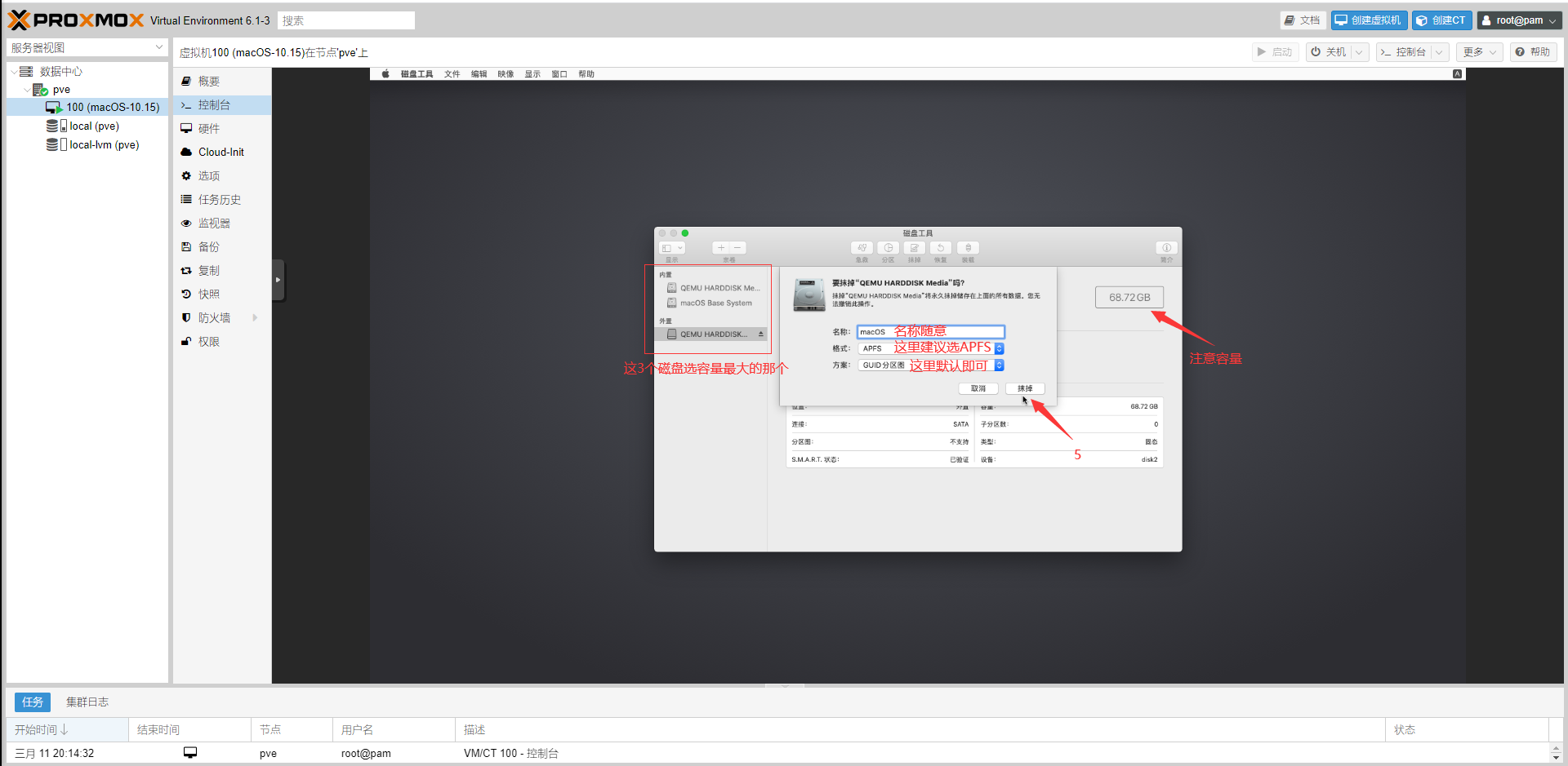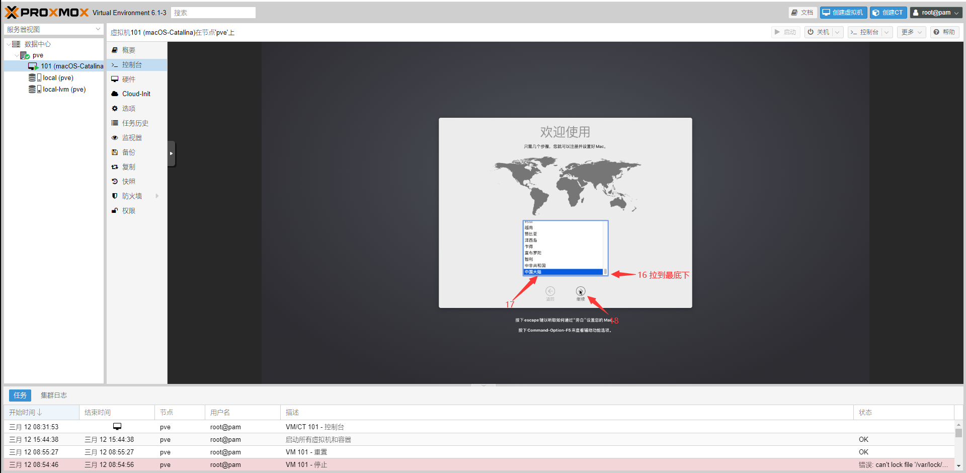 回到 Proxmox 控制台,创建一个 macOS 虚拟机。