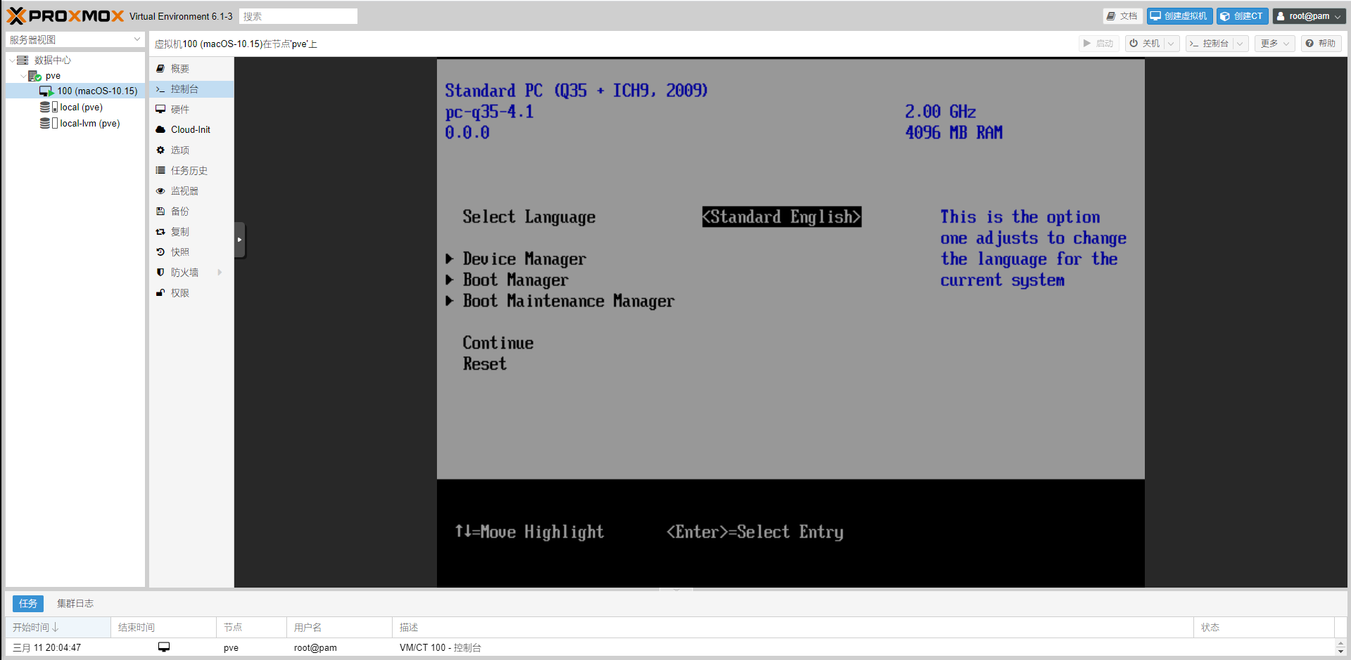 本文只讨论 Proxmox 6 安装 macOS Catalina 10.15,其他的功能(硬件直通,改三码等)不在本文的讨论范围内。本文重在速成,所以每个步骤几乎没有说明,如果需要步骤的说明可以看文末的原教程链接。