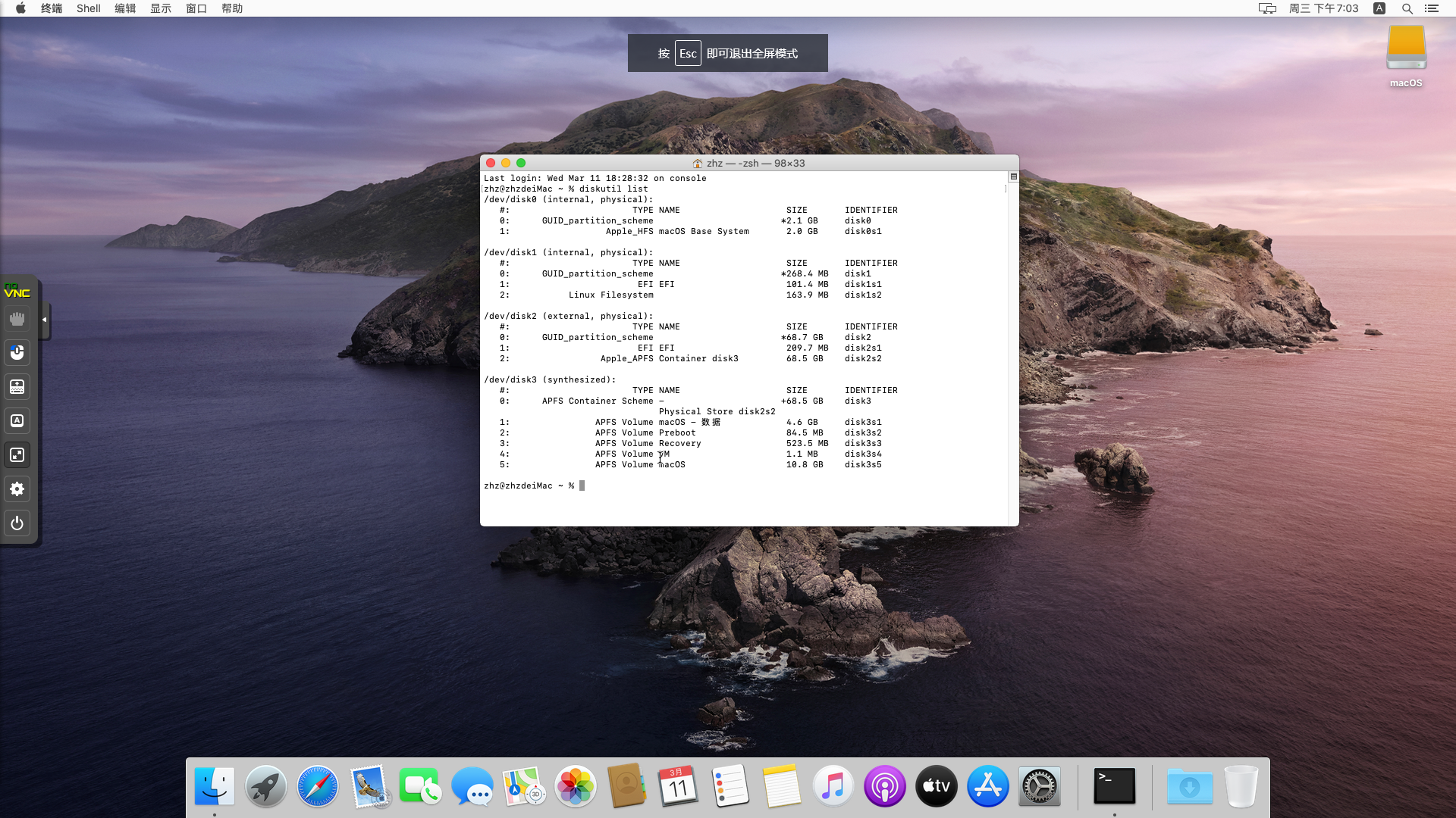 因为虚拟机没有显卡的原因,启动时可能会花屏(就是开机时那个苹果 logo 不在中间),这时只需要把虚拟机重置即可(苹果 logo 在屏幕中间就是启动成功,大概每5次有两次启动成功)。
